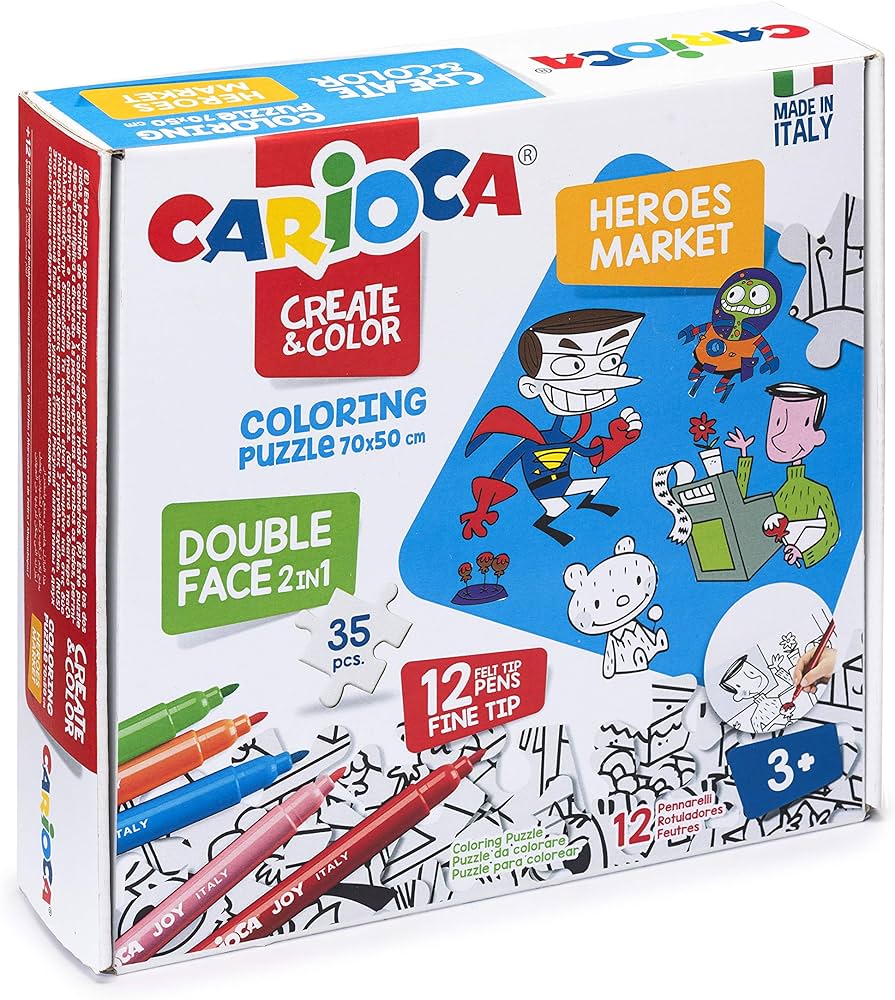 Coloring Puzzle + 12 Felt Tip Pens Superheroes&Market